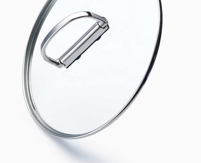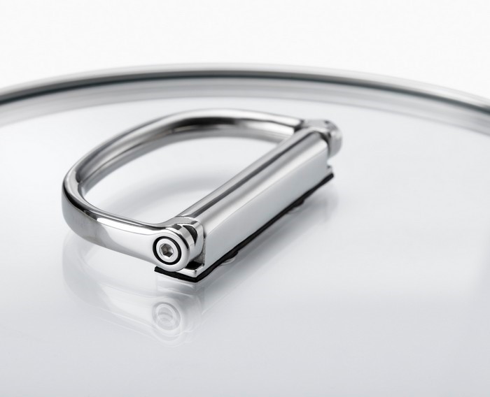 Ogromną zaletą patelni jest jej składany stalowy uchwyt, dzięki czemu zajmuje ona o połowę mniej miejsca w szafce czy szufladzie. Stabilność uchwytu po złożeniu zapewnia testowane przez 20 lat mocowanie SwingLock. Patelnia zaopatrzona jest też w dodatkowy uchwyt z przodu.
