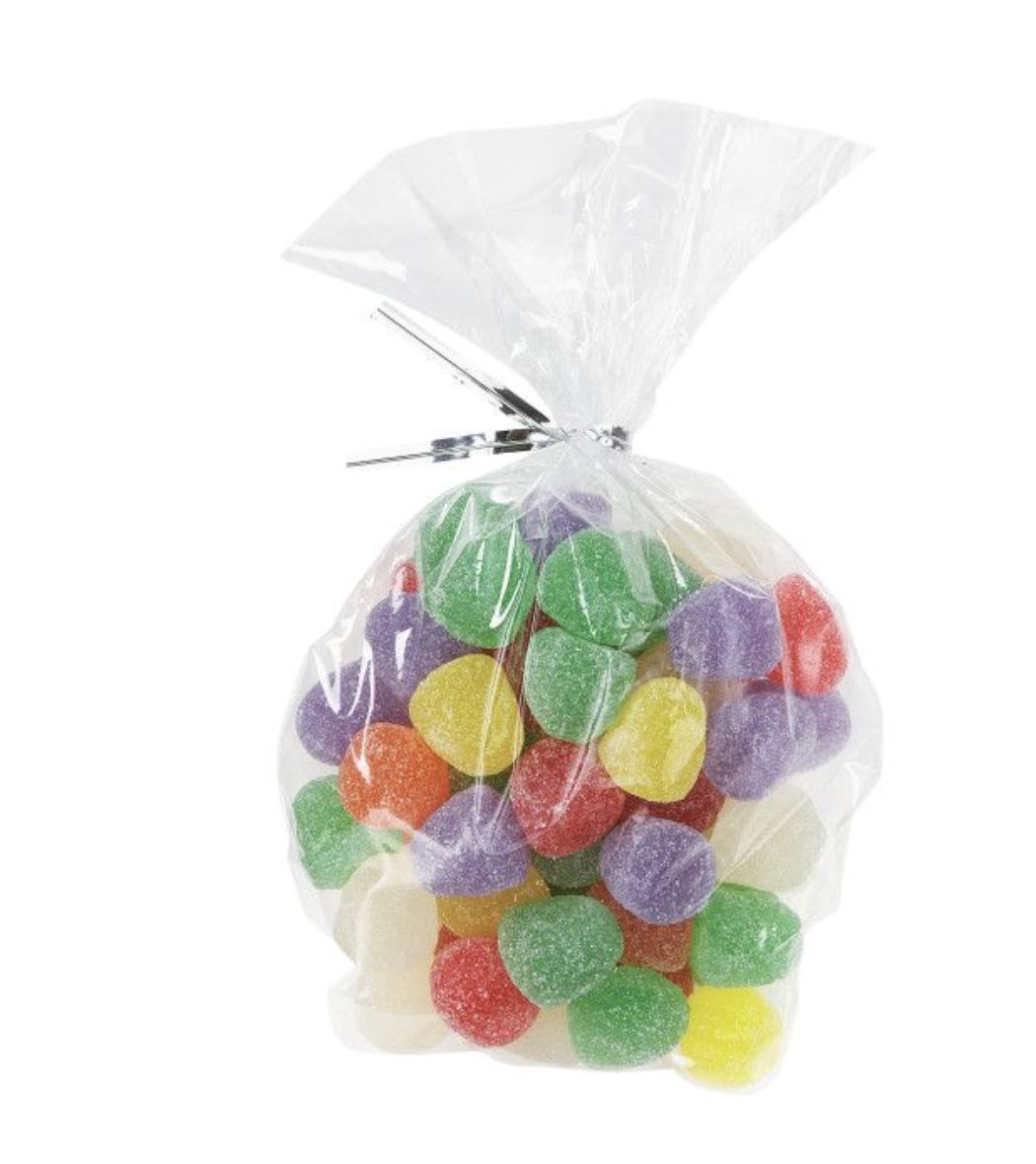 Komplet 100 sztuk przezroczystych torebek o zaokrąglonym kształcie, idealnych do pakownia ciastek, lizaków, cake popsów i innych smakołyków.