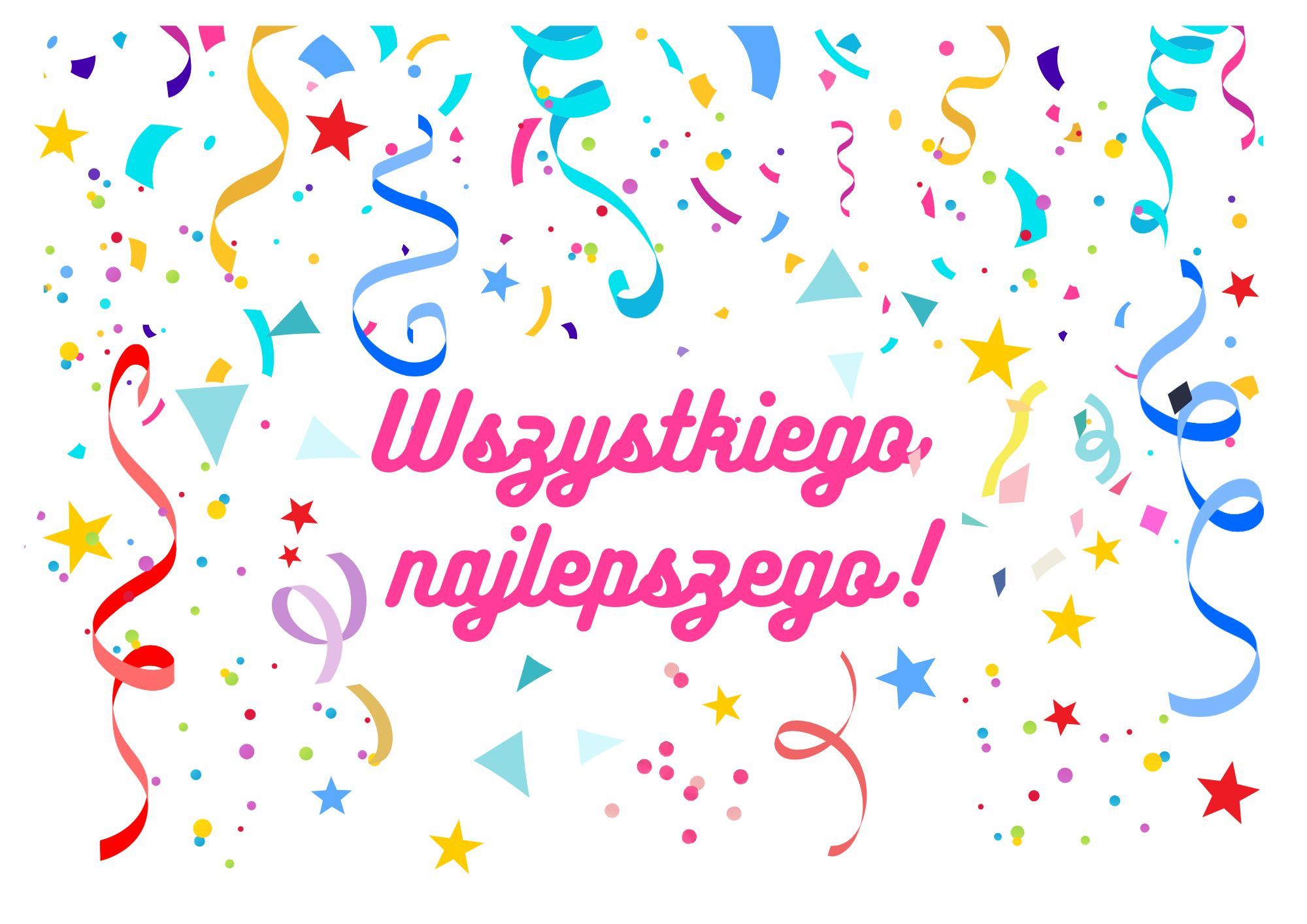 Wyjątkowa i niepowtarzalna dekoracja Twojego tortu - gotowy wydruk na papierze opłatkowym z motywem serpentyn i napisem: Wszytskiego Najlepszego