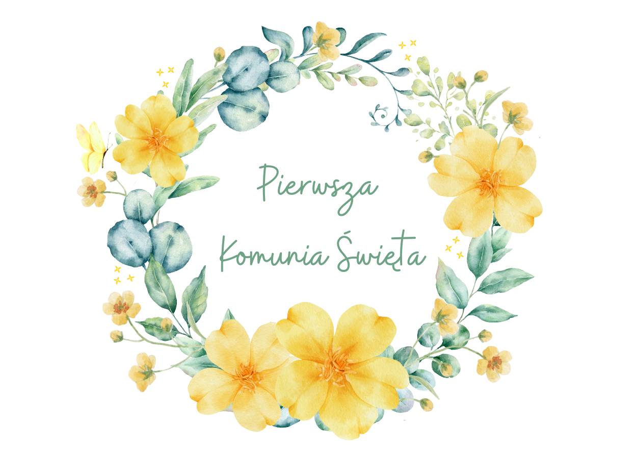 Wyjątkowa i niepowtarzalna dekoracja Twojego tortu - gotowy wydruk na papierze opłatkowym z motywem serpentyn i napisem: Pierwsza Komunia Święta