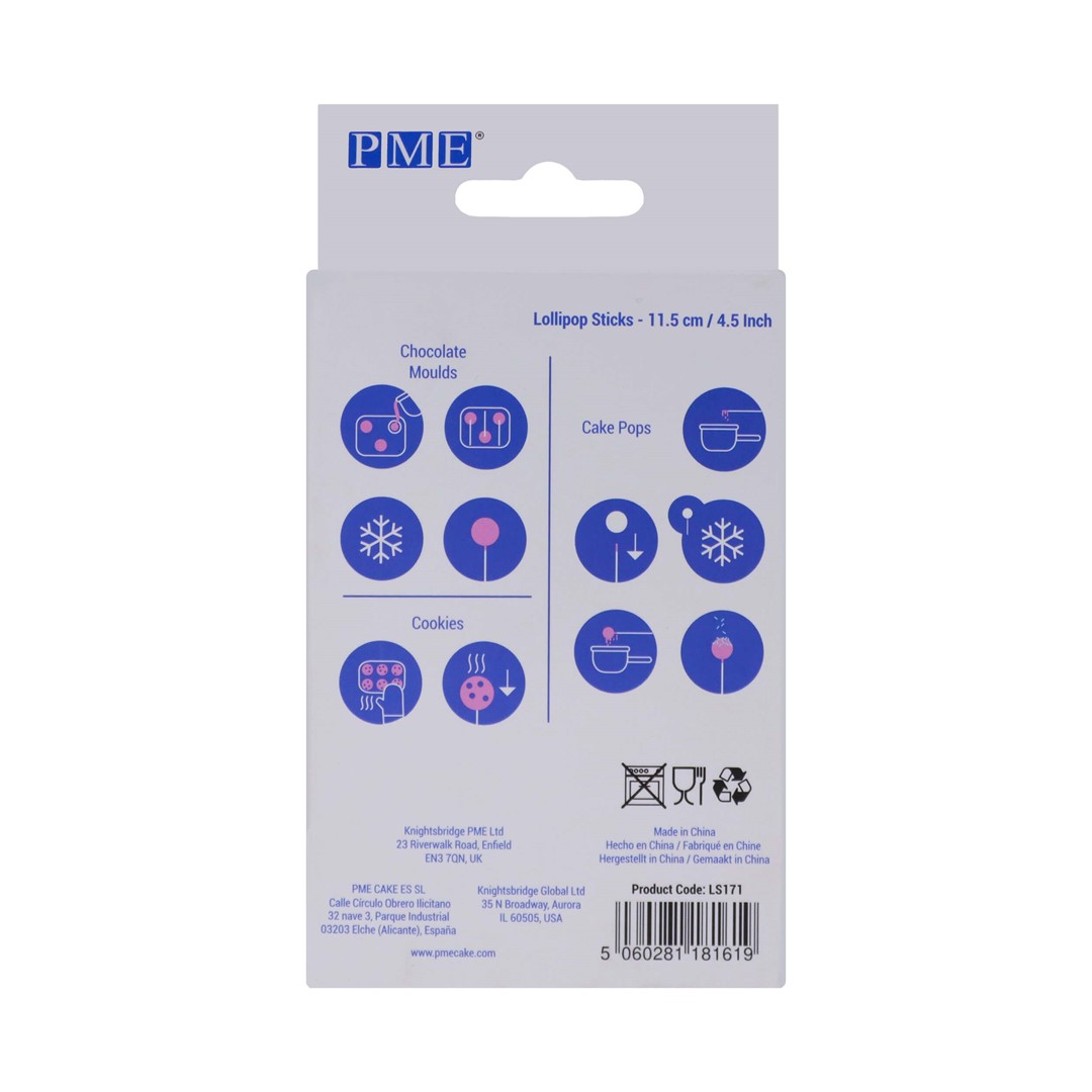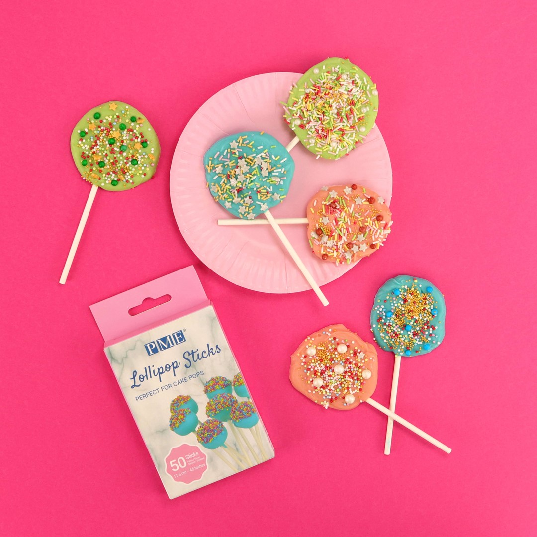 Zestaw 50 sztuk patyczków o długości 11,5 cm. Idealne do tworzenia różnorodnych smakołyków, takich jak lizaki, czekoladowe przekąski, jabłka toffi oraz ciasteczka na patyku. Wykonane z wytrzymałego materiału, zapewniają stabilność i wygodę użytkowania. Gwarantują bezpieczne mocowanie słodkości.