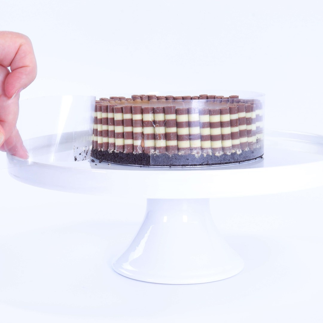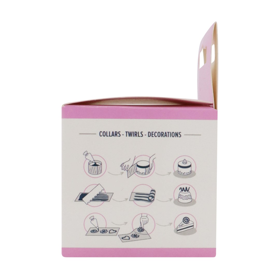 Taśma z folii octanowej - wysokiej jakości przezroczystego tworzywa, które jest bezpieczne w kontakcie z żywnością, gwarantującego trwałość i bezpieczeństwo użytkowania.i Idealna do konserwowania czekolady, dekoracji ciast i przygotowywania różnorodnych deserów.