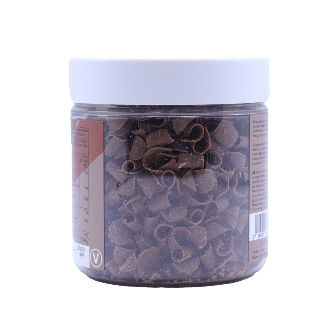 Czekoladowe wiórki wykonane z najwyższej jakości belgijskiej czekolady. Idealnie komponują się z babeczkami, deserami i innymi wypiekami, nadając im unikalny charakter. Urozmaicą lody oraz gorące napoje, takie jak caffe latte czy gorąca czekolada.