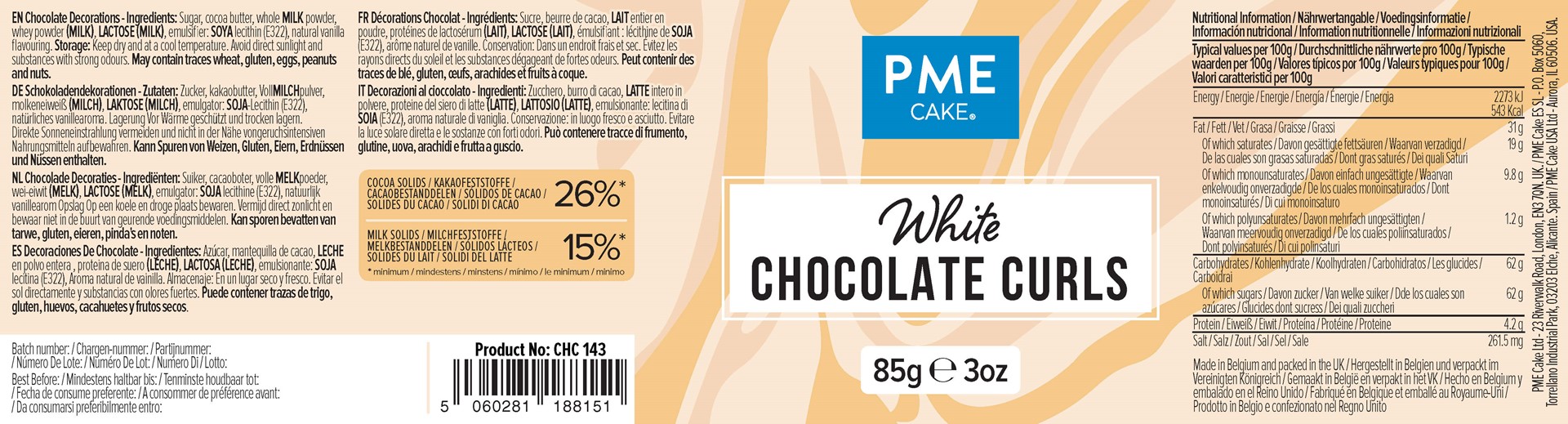 Czekoladowe wiórki wykonane z najwyższej jakości belgijskiej czekolady. Idealnie komponują się z babeczkami, deserami i innymi wypiekami, nadając im unikalny charakter. Urozmaicą lody oraz gorące napoje, takie jak caffe latte czy gorąca czekolada.