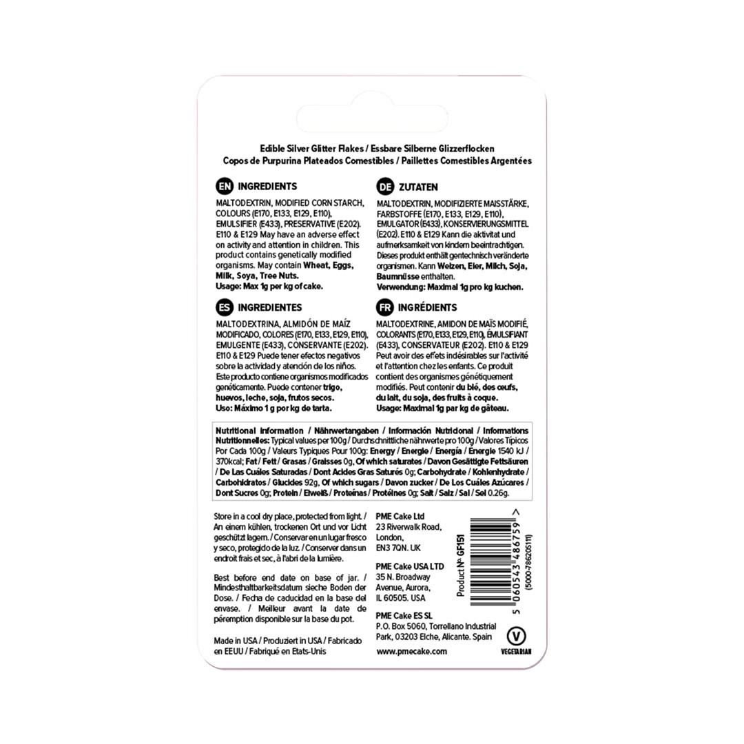 Opakowanie 7,1 g delikatnych, połyskujących płatków jadalnego brokatu. Idealny dodatek do różnorodnych słodkości, takich jak torty, ciasta, ciasteczka, muffinki i desery. Intensywny kolor i subtelny połysk nadają wypiekom wyjątkowy charakter, przyciągając wzrok i zachwycając smakiem.
