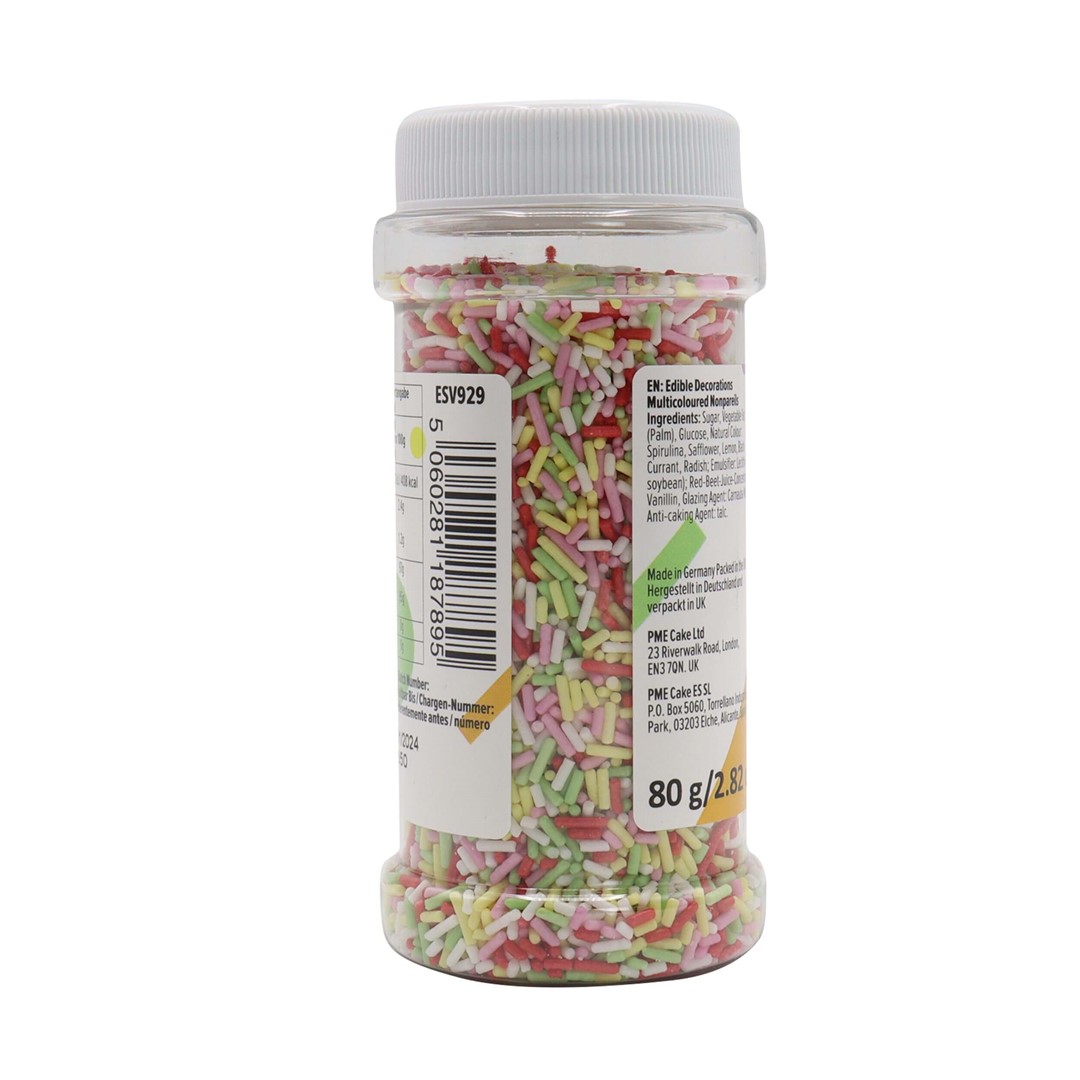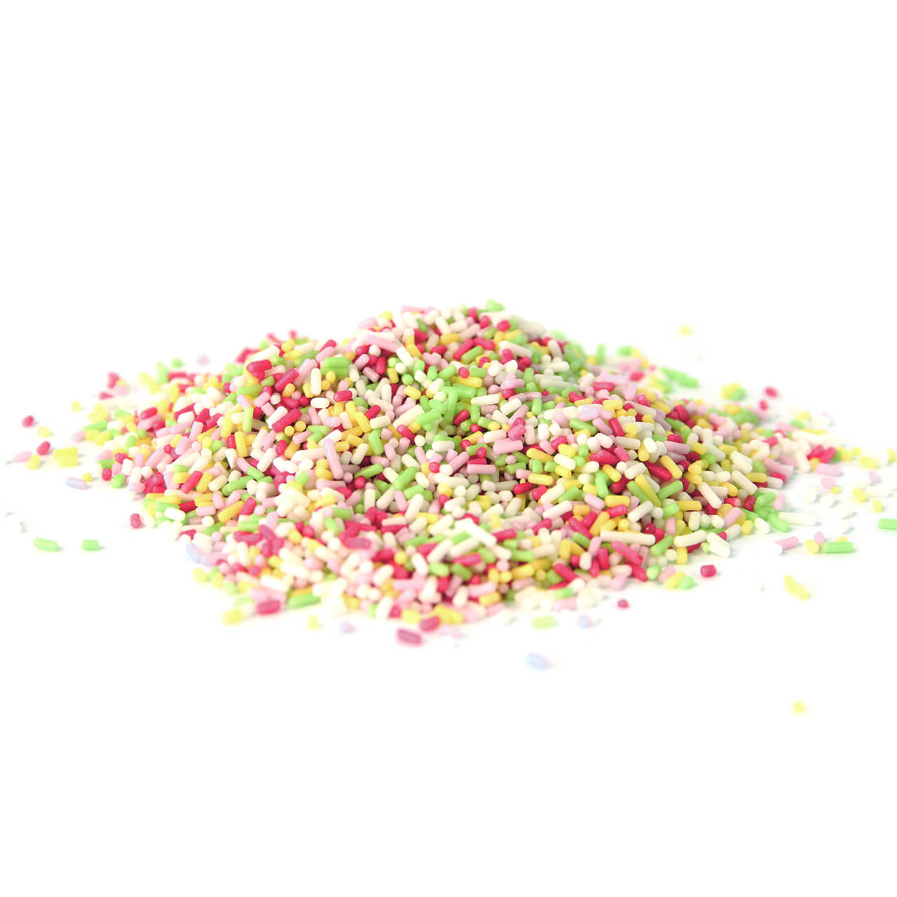 Posypka cukrowa w postaci drobnych, wielokolorowych pałeczek, do dekoracji wypieków i deserów.