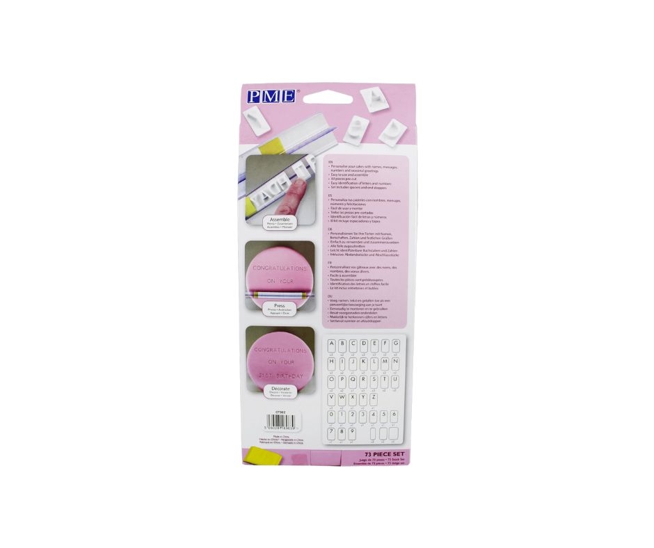 Zestaw stempelków do tworzenia spersonalizowanych napisów na dekoracjach wypieków. Zestaw zawiera 67 liter i cyfr o wysokości 13 mm i głębokości 5 mm, a także znaczniki spacji dla zachowania równych odstępów. Do zestawu dołączona jest listwa o długości 26 cm zapewniająca idealnie wypoziomowanie i równomierne rozmieszczenie liter. Całość zapakowana jest w praktyczny, silikonowy woreczek, co zapewnia porządek i gotowość do użycia.