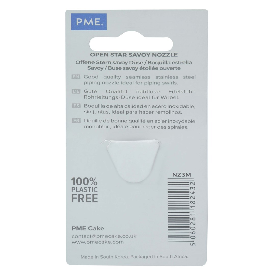Duża tylka z otworem w kształcie gwiazdy, do wykonywania dekoracji typu rozety, czy muszle, z kremu, lukru, czekolady czy bitej śmietany. Świetnie nadaje się również do puree ziemniaczanego i ciasta parzonego. Wykonana ze stali nierdzewnej, zapewnia trwałość i precyzję.
