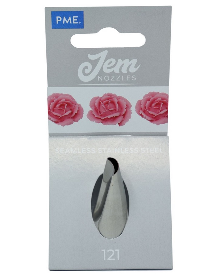 Tylka z wygiętym otworem, do wykonywania średnich płatków róży i i innych kwiatów oraz falbanek, z kremu, lukru, czekolady czy bitej śmietany.