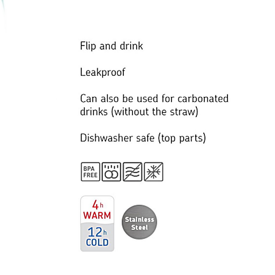 Utrzymuje temperaturę napojów gorących do 4 h, a zimnych do 12 h.