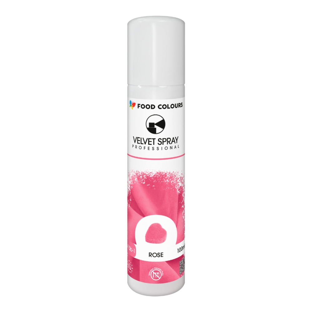 Velvet Spray stworzona z barwników naturalnych, AZO Free. Można go aplikować na schłodzone powierzchnie masy cukrowej, czekolady, marcepanu oraz kremu, dzięki niemu otrzymamy trwały, aksamitny efekt.