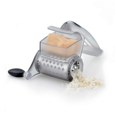 Tarka obrotowa pozwala ścierać produkty bezpośrednio nad daniem, np. parmezan na makaron lub czekoladę na deser.