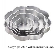 Komplet aluminiowych form do wypieku ciast w kształcie kwiatów.