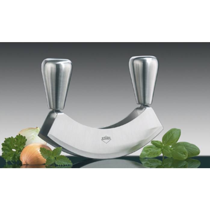 Wywodzący się z włoskiej tradycji nóż z zaokrąglonymi ostrzami, idealny sposób na siekania świeżych ziół. Posiada dwa ostrza i dwie rączki, dzięki czemu siekanie ziół staje się o wiele szybsze i dokładne, nie tracąc przy tym ich właściwości.