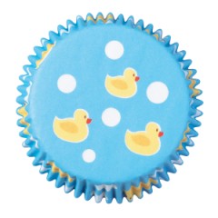 Papierowe wkłady do formy na minimuffinki "Kaczuszki", amerykańskiej firmy Wilton. Dzięki nim pieczenie muffinów lub tradycyjnych babeczek staje się dużo łatwiejsze. Ponieważ nie wylewamy ciasta bezpośrednio do formy nie trzeba jej smarować masłem, a po upieczeniu bez trudu wyjmiemy z niej gotowe babeczki nie martwiąc się, że uszkodzimy delikatne ciasto lub teflonową powłokę formy.