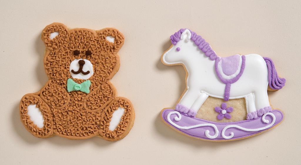 Przygotowujesz pępkowe, czy coraz bardziej popularny 'baby shower'? Chcesz w niebanalny sposób poinformować bliskich o ciąży? A może planujesz przygotować świeżo upieczonej mamie pyszne ciasteczka? Jeśli tak, to polecamy zestaw foremek Wiltona, w którym znajdziesz kształty dziecięcego body, konika na biegunach, dziecięcego wózka, pluszowego misia.
