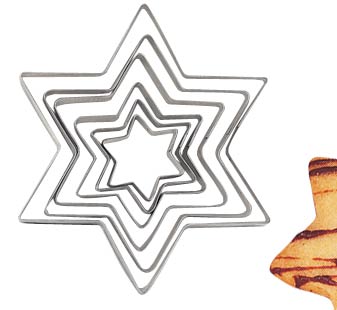 świetne foremki, bardzo ostre przez co dobrze wycinają pierniki z ciasta z dodatkami, największa gwiazdka ma 9cm rozpiętości, najmniejsza 1cm, można dzięki nim zbudować uroczą piernikową choinkę, polecam :up: