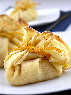 Naleśniki to rzecz uniwersalna. Można je tylko cukrem posypać (któż nie pamięta, kiedy dzięcięciem będąc nimi się zajadał?), dżemem posmarować i zwinąć w rulonik, sokiem pomarańczowym skropić, bitą śmietaną obłożyć, polać kremem czekoladowym i pałaszować, pałaszować, nie pamiętając o kaloriach (w swoją drogą, ktoś widział na oczy kalorię???, może to tylko wymysł niejadków...). Można też je nadziać jabłkami