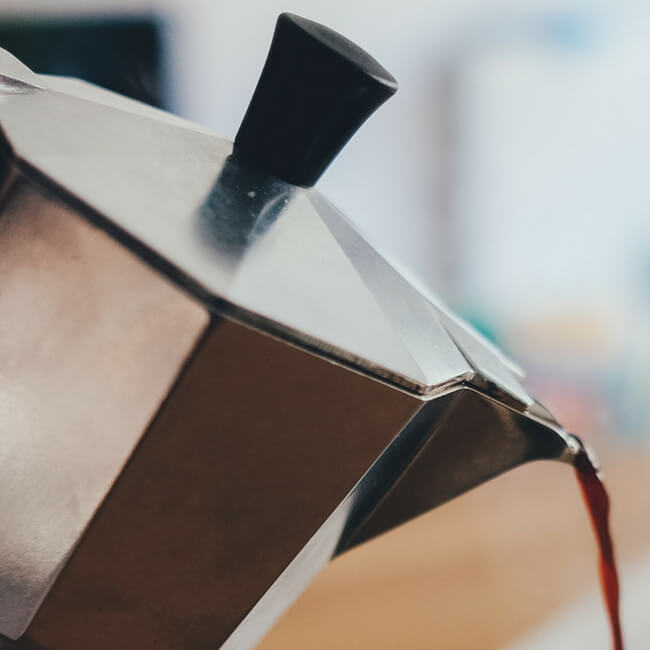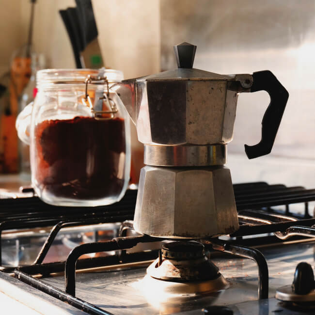 Przygotowujemy kawę w kawiarce. Do dolnego pojemnika wlewamy zimną wodę, tak aby sięgała nie wyżej niż zaworek. Na pojemnik nakładamy siteczko. Do siteczka wsypujemy kawę - ilość zależy do wielkości kawiarki i naszych upodobań. Przykręcamy górną część kawiarki i stawiamy na kuchence. Kawa będzie gotowa, gdy wypełni się górna część. Możemy zajrzeć do środka, gdy usłyszymy charakterystyczne gulgotanie.