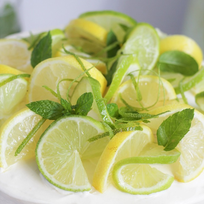 Wstawiamy do zamrażarki na 6 godzin. Po wyjęciu dekorujemy krążkami cytryny, limonki oraz listkami mięty. Przed podaniem trzymamy w lodówce przez około 30 min, by ciasto lekko się rozmroziło i semifreddo nabrało konsystencji lodów.