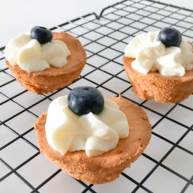 Mini, bo upieczone w formie do muffinów. Pomysł powstał przy okazji robienia tiramisu, bo co zrobić z białkami, które zostają? Postanowiliśmy spróbować czy takie "mini angel babeczki" też wyjdą. I wyszły. Malutkie, mięciutkie, idealne z bitą śmietaną i świeżymi owocami.
