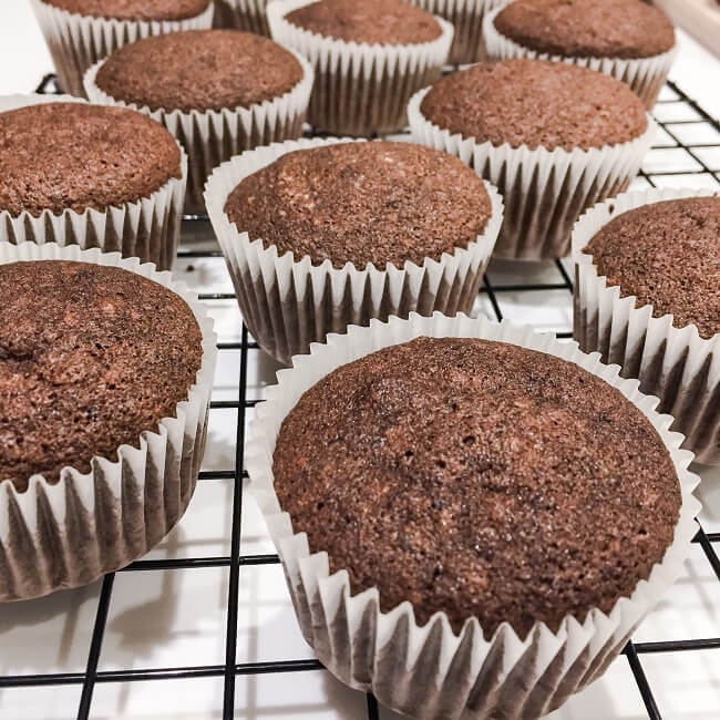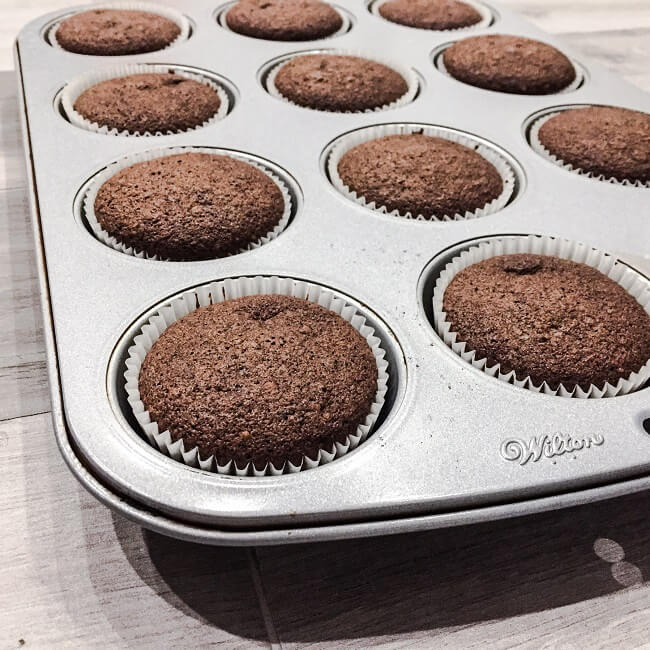 Przekładamy ciasto do formy do muffinów wyłożonych papilotkami i pieczemy 25 min w piekarniku nagrzanym do 180 stopni.