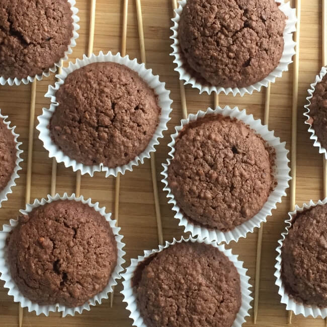 Wyciągamy z piekarnika i gdy przestaną parzyć, wykładamy na kratkę do studzenia. Nie należy ich zostawiać formie, bo się babeczki „zapocą”. Jeśli nie mamy kratki, można wysypać na stole wykałaczki lub słomki i na ich poustawiać muffinki. Wtedy, po wystudzeniu papilotki nie będą wilgotne od spodu.