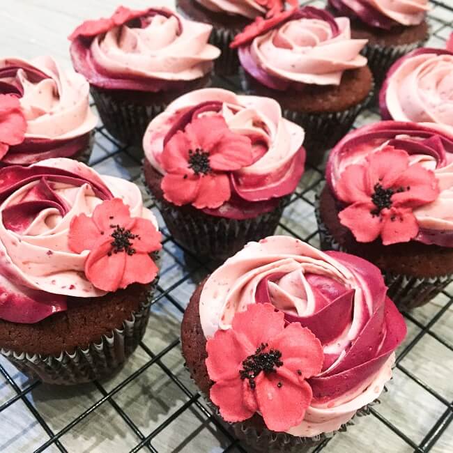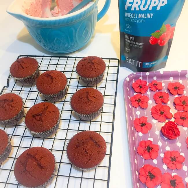 Ilekroć wybieram się w odwiedziny do znajomych, gdzie nie wypada pokazać się z pustymi rękami, robię babeczki red velvet. Bo to pyszne, aksamitne i wilgotne ciasto w pięknym, czerwonym kolorze. Bardzo dobrze komponuje się z kremem mascarpone. Tym razem przygotowałam krem z masła i mascarpone według przepisu „królowej tortowych kremów” pani Magdy z bloga