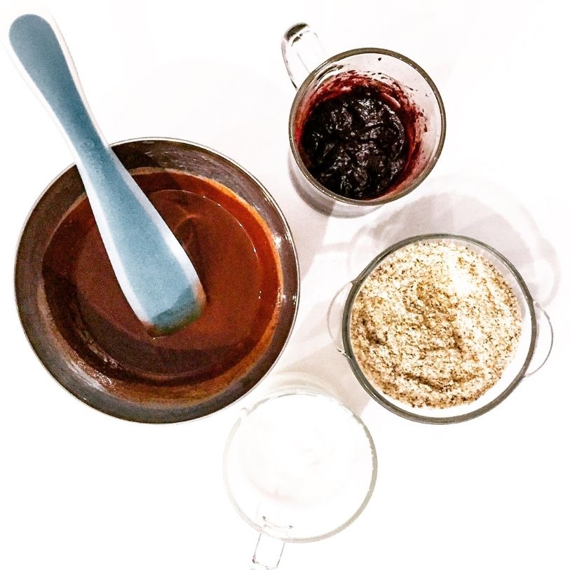 Czekoladę rozpuszczamy w gorącej kąpieli wraz z olejem, dokładnie mieszamy aż składniki się połączą. Odstawiamy do wystudzenia.
